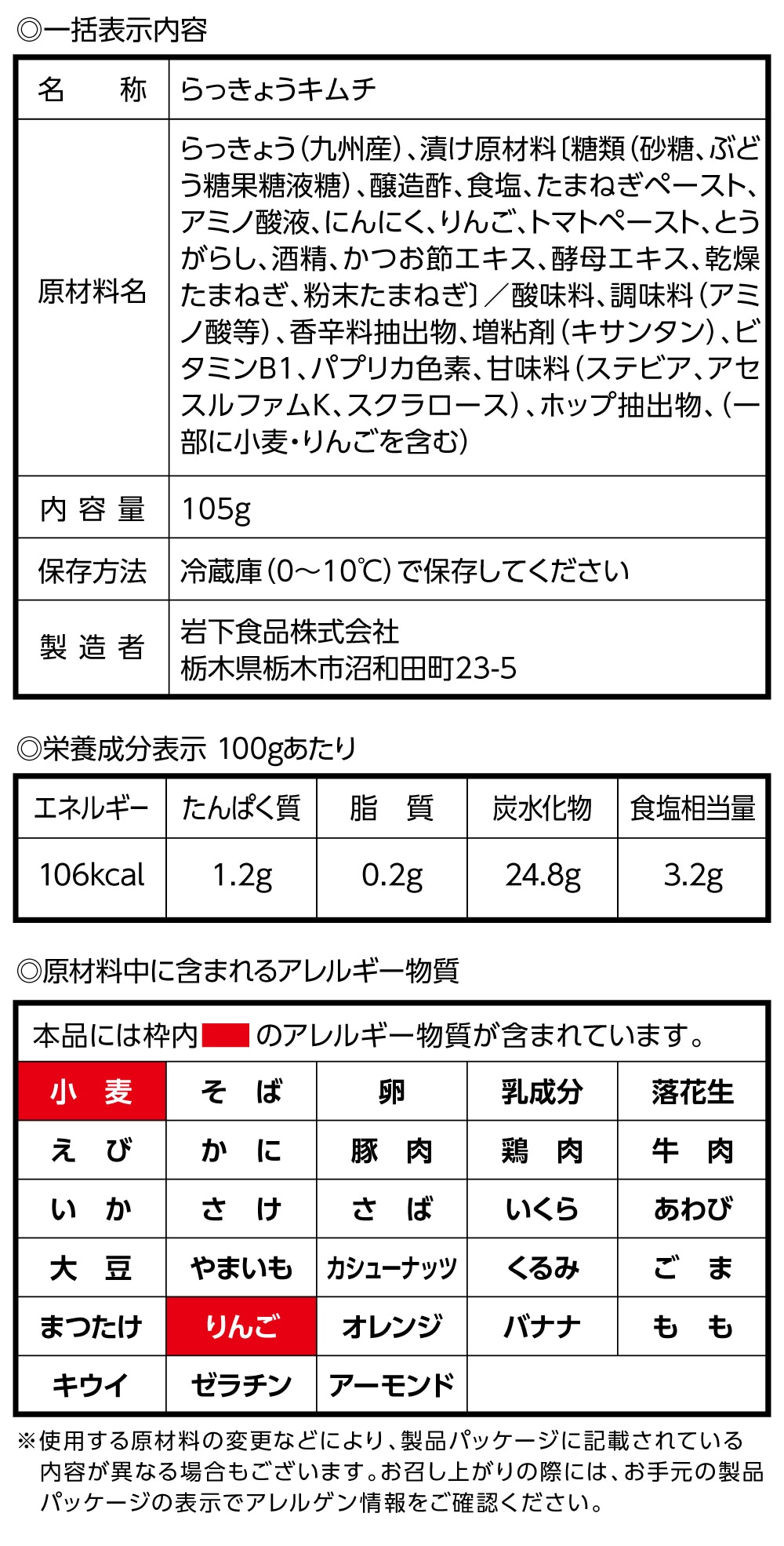 トップ > らっきょう > 岩下のらっきょうキムチ