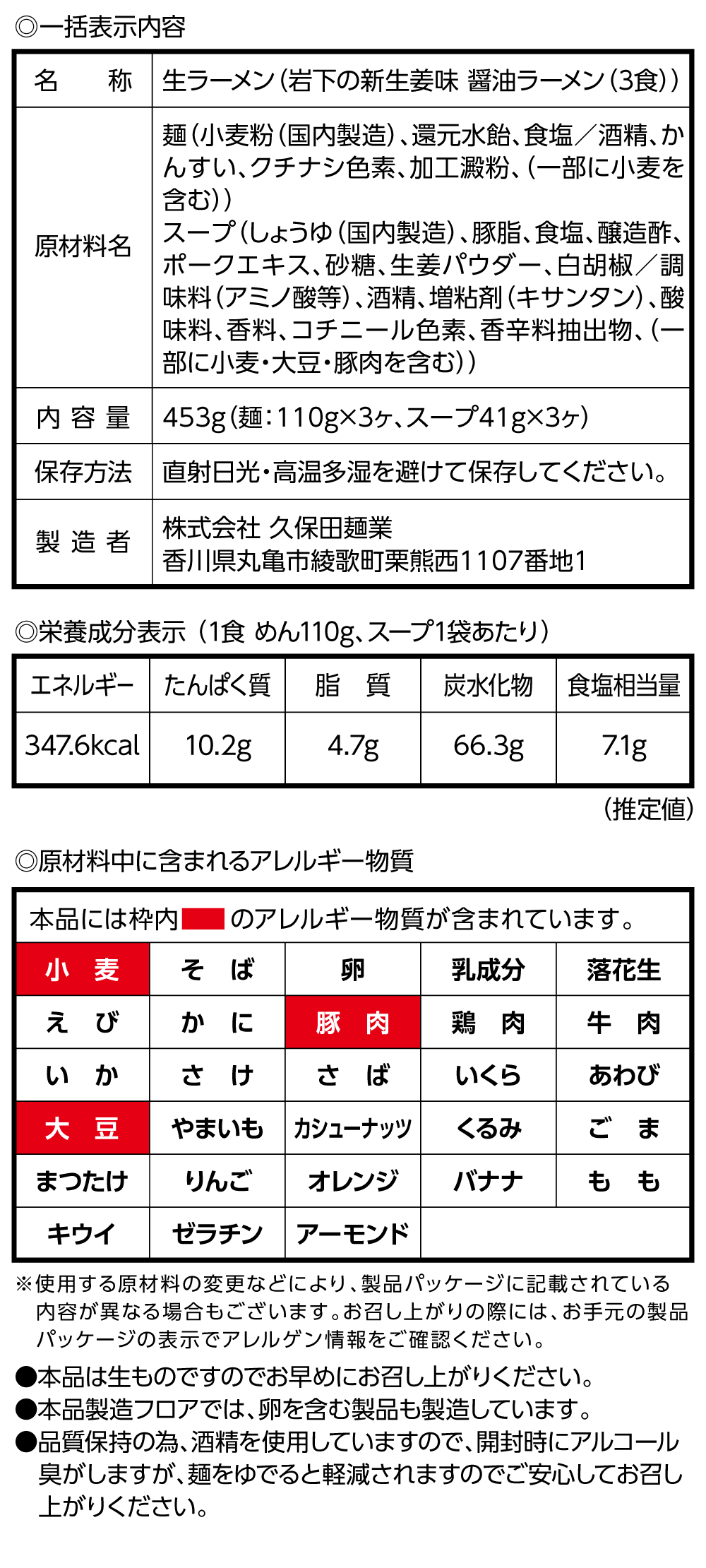 岩下の新生姜味 醤油ラーメン 453g(麺110g×3、スープ41g×3)
