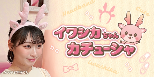 「イワシカちゃん」のツノと耳をかたどったカチューシャ。ジンジャー神社のちょっとシャープな"狛犬"スタイルから、商品パッケージにも登場しているツノと耳の形が丸みをおびた公式キャラクターのスタイルに。よりかわいらしくなりました。